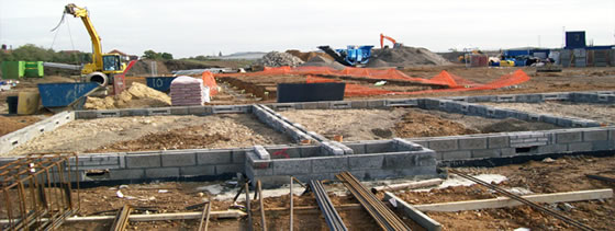 We can install sewer connections and mini pumping stations. We have also installed specialist raft foundations for works on sites with poor ground bearing capacity.